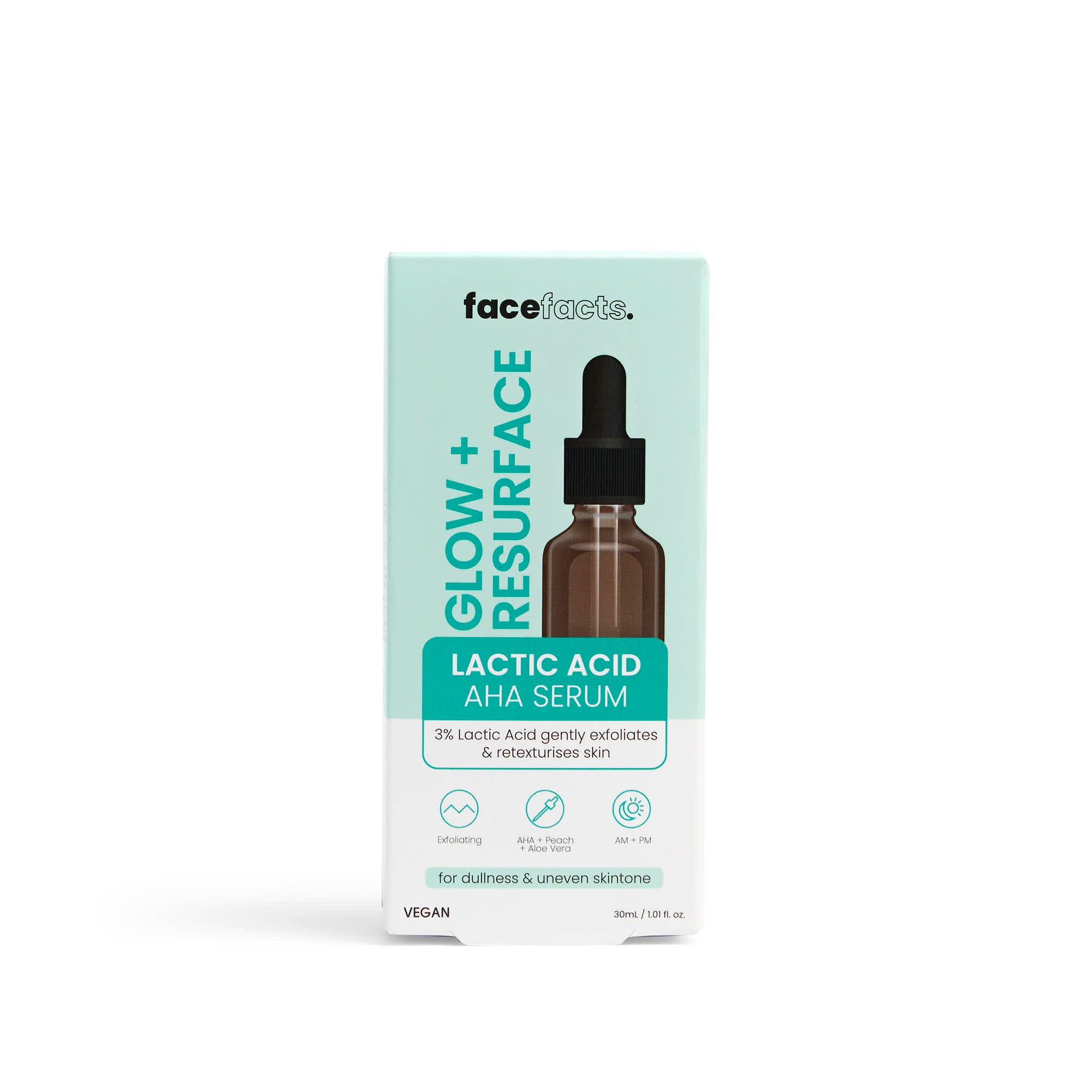 Exfoliate & brighten your skin with our Lactic Acid Facial Serum. Packed with 3% Lactic Acid, calming Aloe Vera and Vitamin C-rich Peach extract, our resurfacing serum gently buffs away surface impurities to promote a more even complexion. Apply before bed to dial up your glow whilst your skin sleeps.